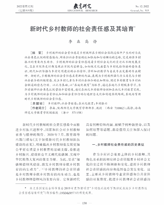 《新时代乡村教师的社会责任感及其培育》