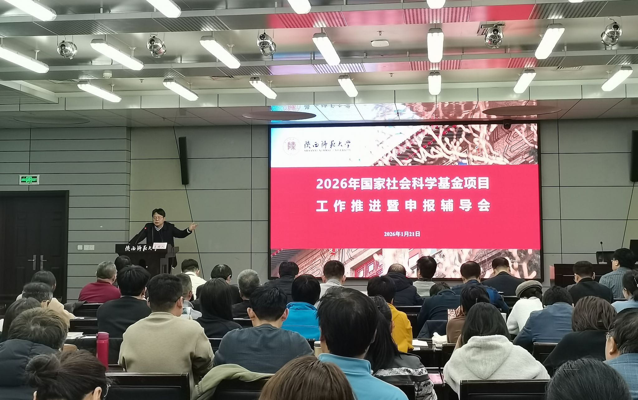 1月21日,我校2026年国家社会科学基金项目工作推进暨申报辅导会在长安校区图书馆西附楼报告厅召开。副校长李秉忠出席会议并讲话,各文科单位负责人、科研秘书、相关科研人员及社会科学处全体成员参会。
